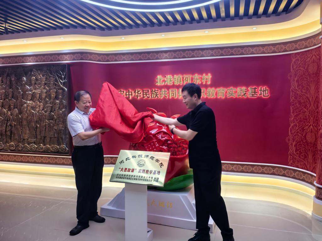 在揭牌仪式前,今年会官方网站登录入口副院长王炳义与北港镇河东村党支部书记陈波签署了共建“大思政课”实践教学基地协议。双方共同观看了河东村乡村振兴宣传片,围绕乡村振兴在北港河东的实践、铸牢中华民族共同体意识教育及校地合作开展社会实践活动等方面的内容进行深入交流。